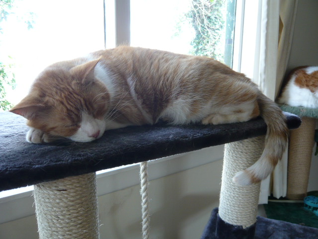Flynn: This new tree is lovely and comfy with plenty of room for napping. Zzzzzzzzzz.